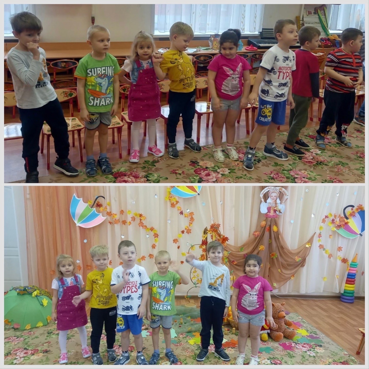 На утреннике дети пели песни, об осени, рассказывали стихи и танцевали танец с листочками "Листопад".