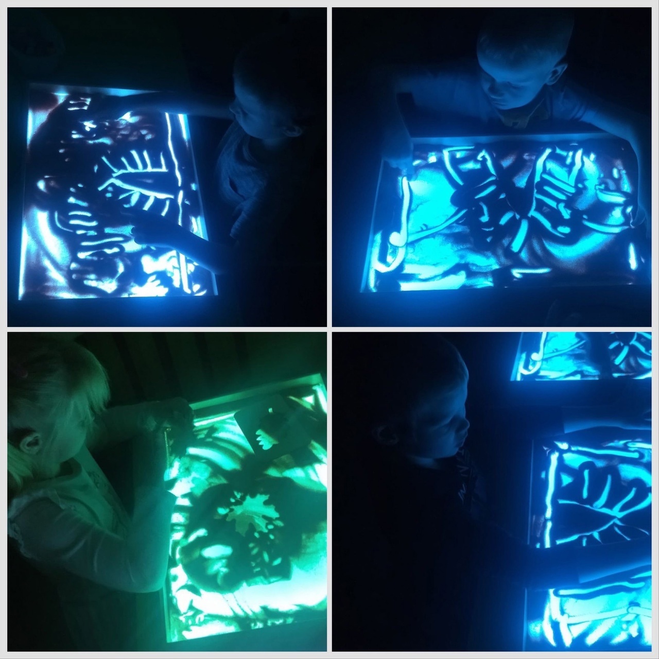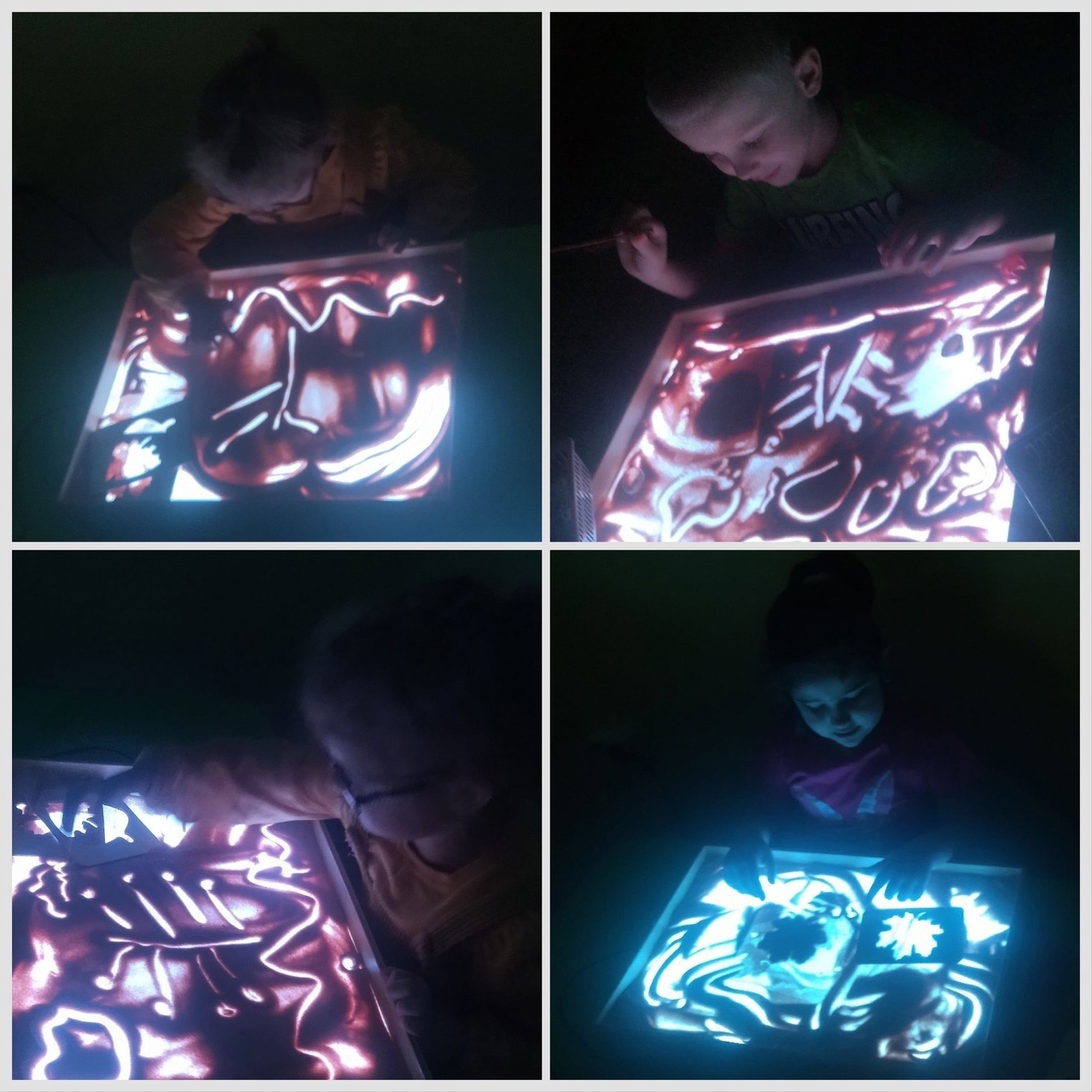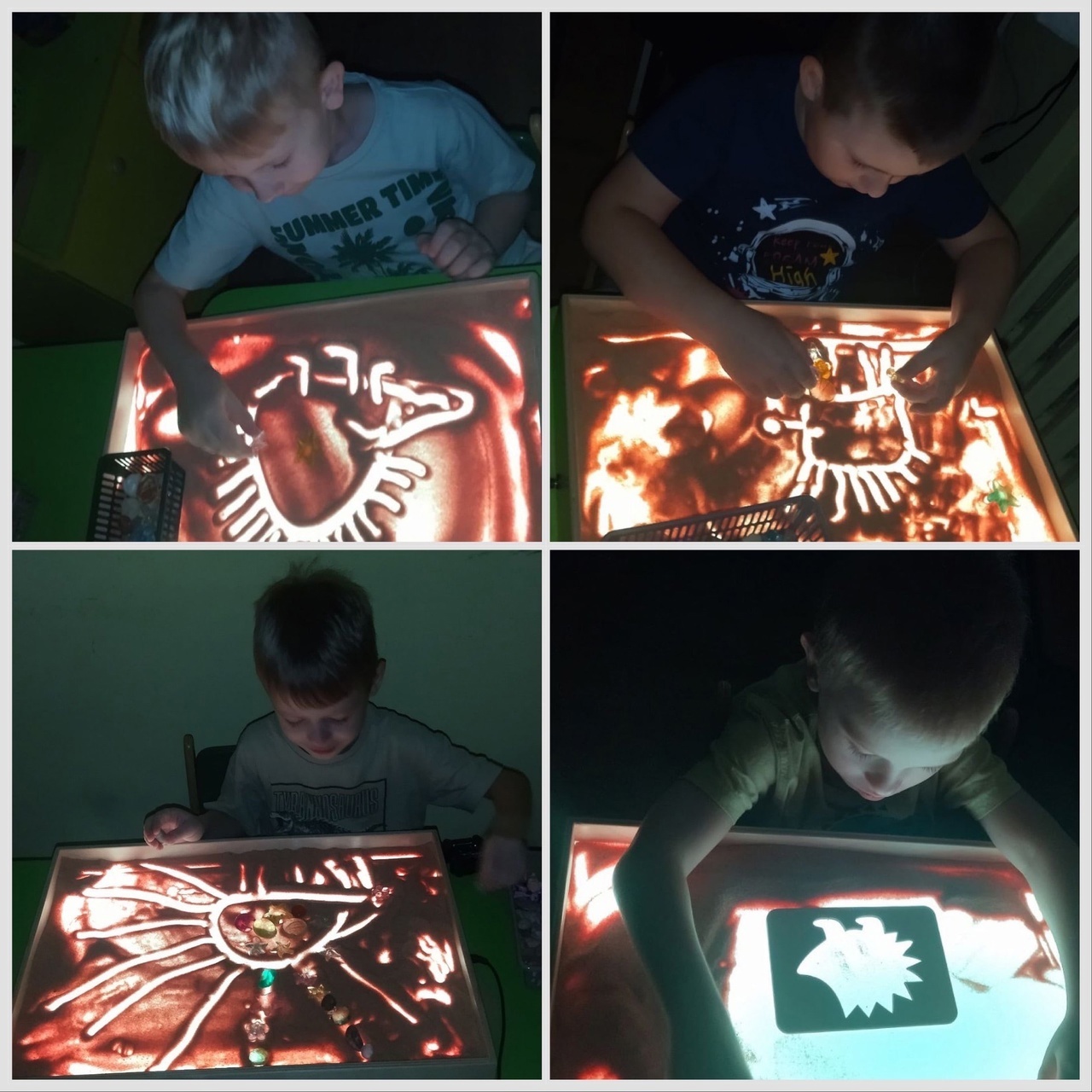 На кружке "Пескотерапия" под руководством педагога дополнительного образования Курненковой Людмилы Юрьевны дети рисовали осеннее дерево и ежика.