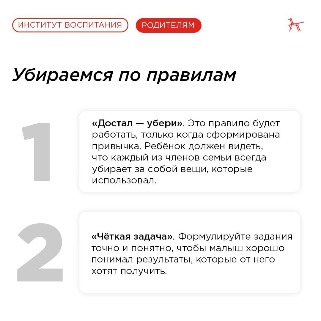 Главные правила уборки с ребёнком, а также игры мы собрали в карточках.
