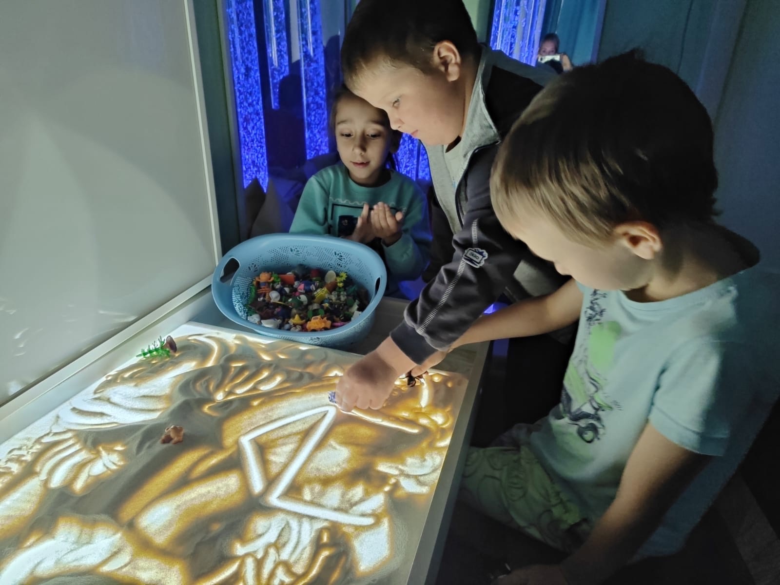 Воспитанники группы «Радуга» побывали в удивительном путешествии в сенсорной комнате. Дети слушали успокаивающую музыку при приглушенном свете, педагог-психолог Лопатина Елена Сергеевна провела с детьми игры на доверие и сплочение детского коллектива, дети выполнили релаксационные упражнения на снятие эмоционального и мышечного напряжения.
