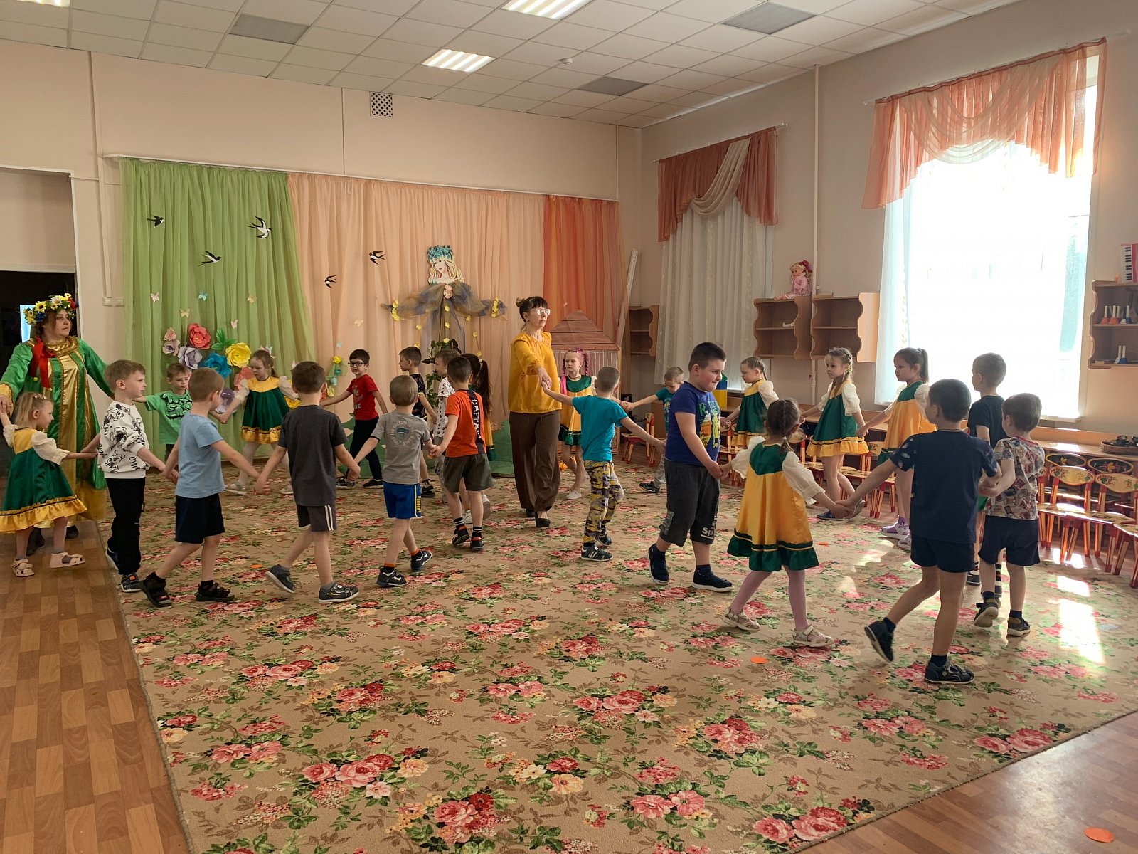 Дети группы «Солнышко» и «Радуга» водили хороводы, исполняли песни и танцевали под звуки весенней музыки. А повстречавшись с Весной, получили заряд веселого настроения.