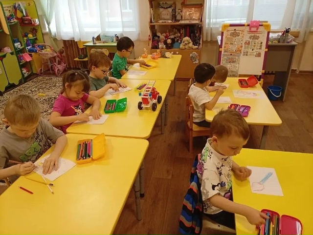 Кроме того, дети посмотрели мультфильм «Кошкин дом», который помог закрепить полученные знания. После просмотра они с удовольствием раскрасили тематические раскраски и нарисовали свои пожарные машины.